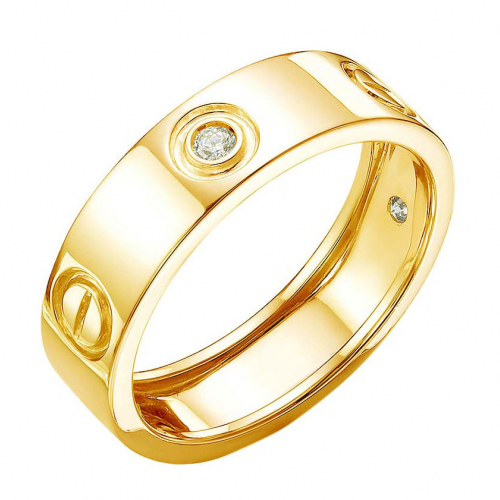 Изящное кольцо из солнечного жёлтого золота 585 пробы украшено сверкающими бриллиантами, подчеркивающими природную теплоту и блеск драгоценного металла