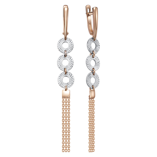 Удлинённые серьги из красного и белого золота 585 пробы — настоящая находка для создания стильного и изысканного образа