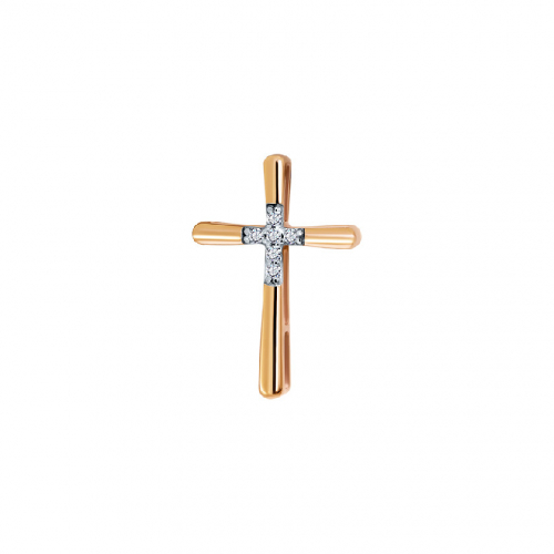 Элегантная подвеска выполнена из благородного красного и белого золота 585 пробы в дизайне креста