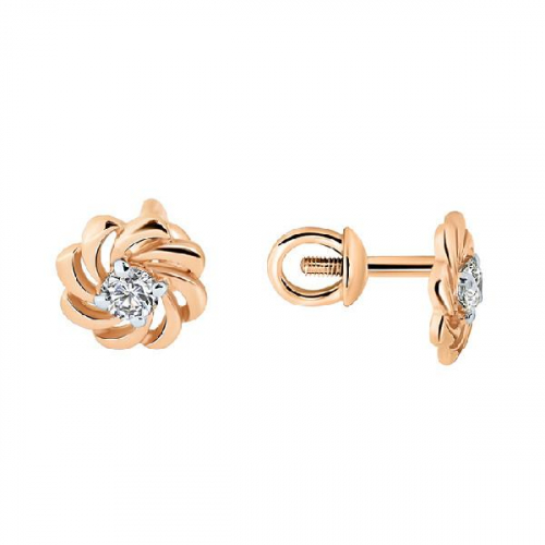 Изысканные серьги-пусеты выполнены из красного золота 585 пробы и дополнены сверкающими бриллиантами