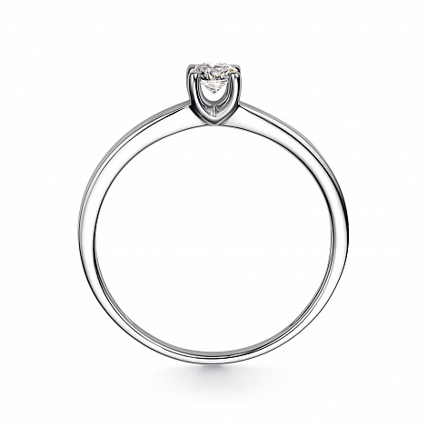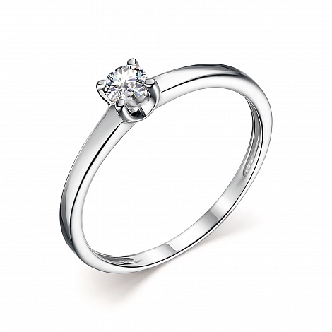 Нежное помолвочное кольцо с сверкающим бриллиантом выполнено из белого золота 585 пробы