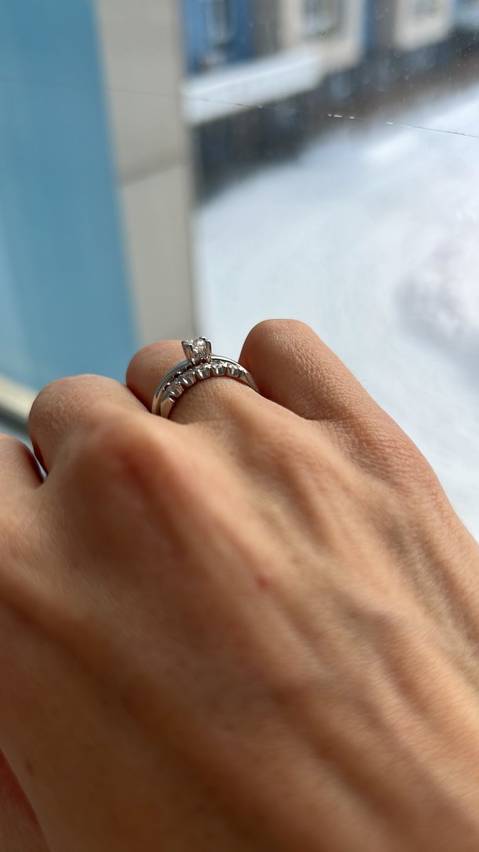 Давно хотела себе к обручальному кольцу ещё одно, но с бриллиантом. Очень красиво смотрится, камень крупный, переливается просто восхитительно. Я в таком восторге, не передать словами. Попыталась показать на фото, но к сожалению, она не передаёт всей прелести и блеска.