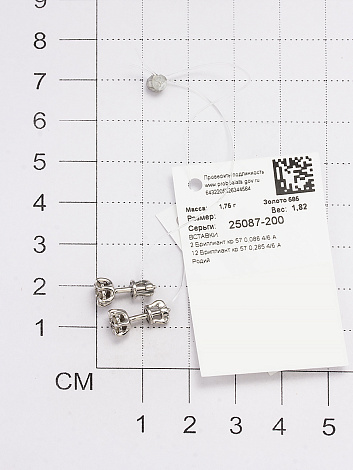 Изделие представлено брендом "Алькор". Средняя характеристика камней на артикул: 2 Бриллиант Круг 57 0.088 3/6, 12 Бриллиант Круг 57 0.292 3/6. К украшению прилагается сертификат от производителя о подлинности драгоценных камней. В комплект поставки входит: