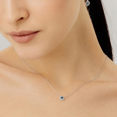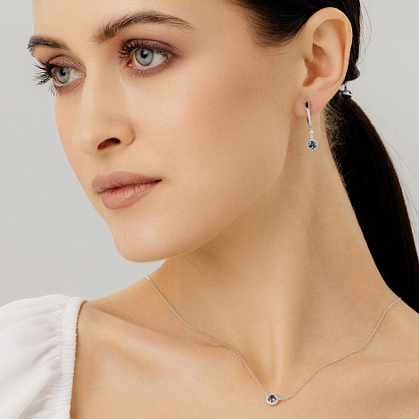 Изящное серебряное колье с ярко-синим топазом цвета Лондона и сверкающей россыпью фианитов — настоящий праздник для глаз! Цельный дизайн и плавные линии дополняются мягким мерцанием камней, формируя идеальный баланс формы и содержания