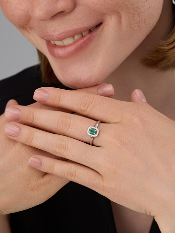 Элегантное кольцо выполнено из серебра 925 пробы и украшено красивым зеленым изумрудом, подчеркивающим его изысканность