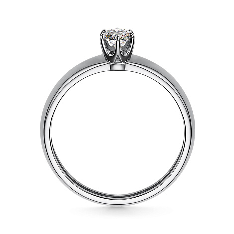 Кольцо с сверкающим бриллиантом с огранкой в 57 граней выполнено из белого золота 585 пробы