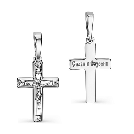 Крест, в котором исполнены все каноны Православной Церкви, выполнен из белого золота 585 пробы