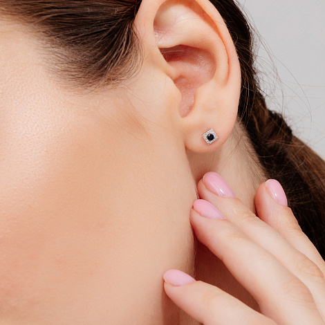 Изящные серьги - пусеты квадратной формы с натуральными сапфирами в окружении сверкающих бриллиантов, выполнены из красного и белого золота 585 пробы. Нежное и изящное украшение подойдёт как к повседневному, так и праздничному образу. Тип замка - винтовой, самый надежный и комфортный.