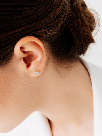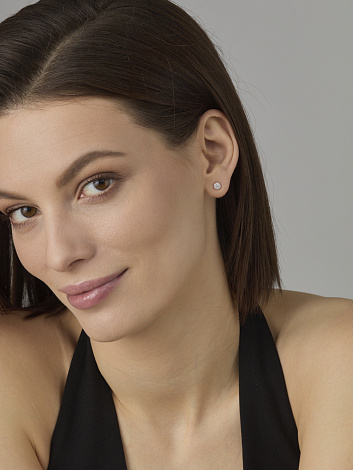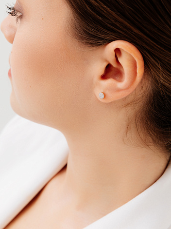 Серьги - пуссеты выполнены в сочетании красного и белого золота 585 пробы, украшены россыпью сияющих бриллиантов