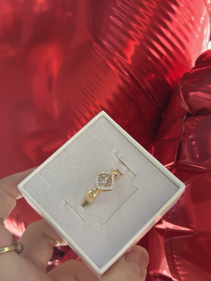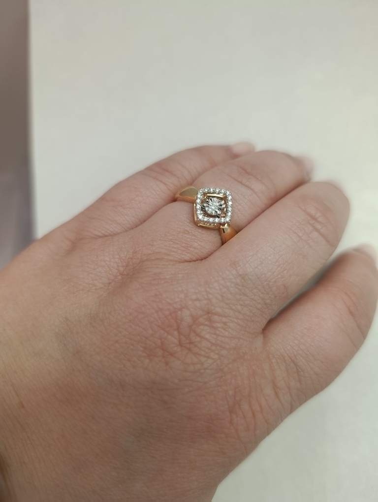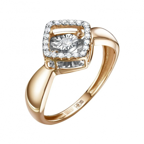 Изящное кольцо из сочетания красного и белого золота 585 пробы украшено уникальным танцующим бриллиантом