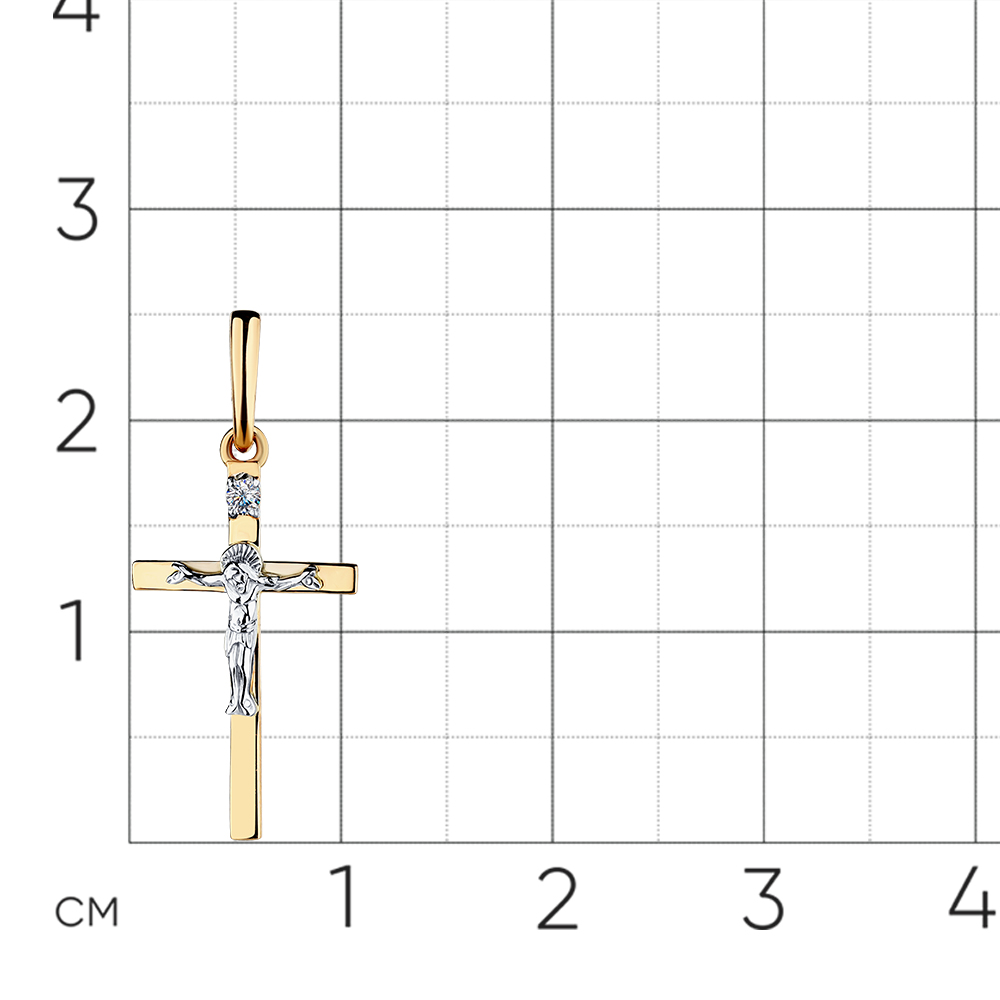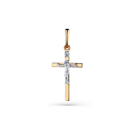 Подвеска - крест выполнена в сочетании красного и белого золота 585 пробы, украшена великолепным сияющим бриллиантом