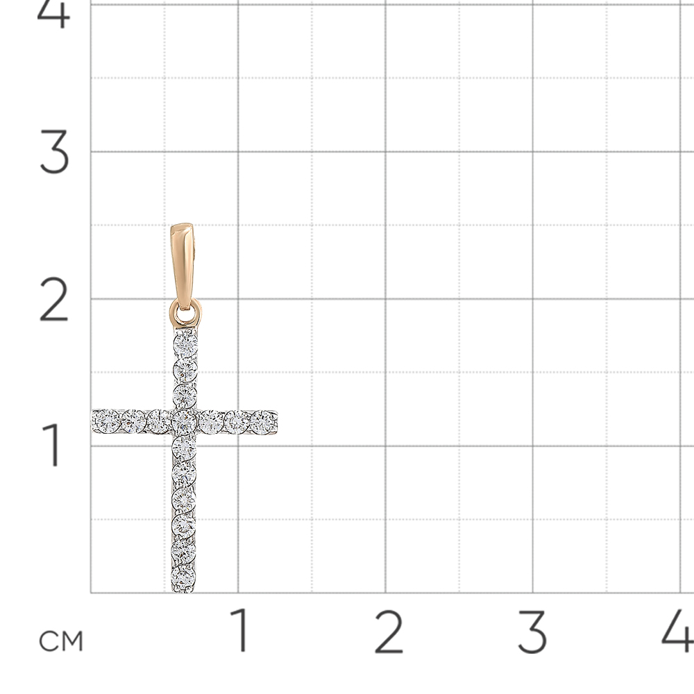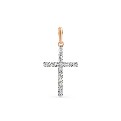 Подвеска в виде декоративного креста, украшенного бриллиантами, выполнена с сочетанием красного и белого золота 585 пробы