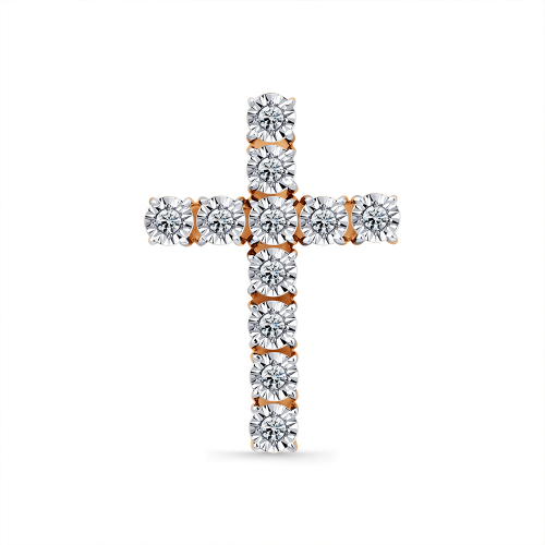 Роскошный крест из комбинированного золота — белого и красного — с россыпью сверкающих бриллиантов