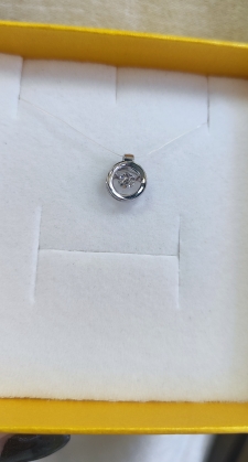 Эта миниатюрная и элегантная подвеска выполнена из белого золота 585 пробы, которое отличается холодным платиновым сиянием и универсальностью