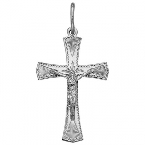 Подвеска в виде нательного креста прямой формы выполнена из серебра 925 пробы