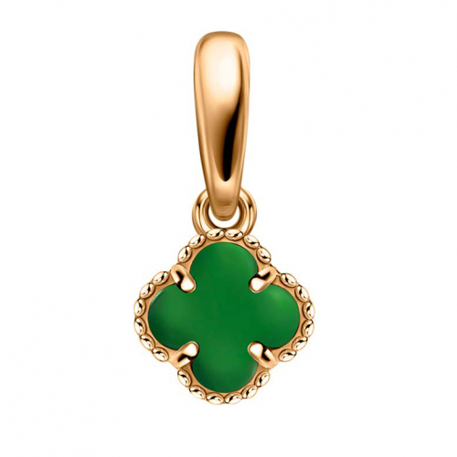 Изящная подвеска выполнена из красного золота 585 пробы и украшена натуральным агатом. Гармония благородного металла и природного камня делает украшение изысканным и стильным дополнением к любому образу. Представлено брендом VERONIKA. Средняя характеристика камней: 1 Агат клевер 6.0*6.0 зеленый В комплект поставки входит: