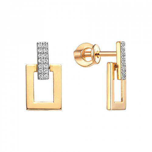 Стильные геометрические пусеты выполнены из благородного сочетания красного и белого золота 585 пробы и украшены сверкающими бриллиантами
