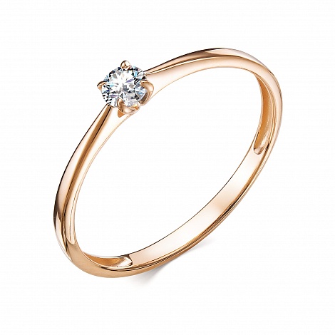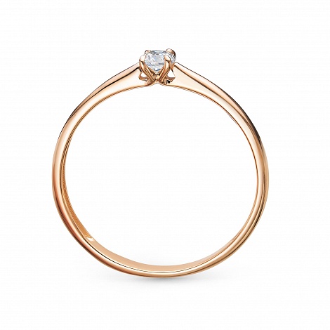 Кольцо классического дизайна выполнено из красного золота 585 пробы, украшено бриллиантом полной огранки 57 граней, которая полностью раскрывает блеск и красоту камня