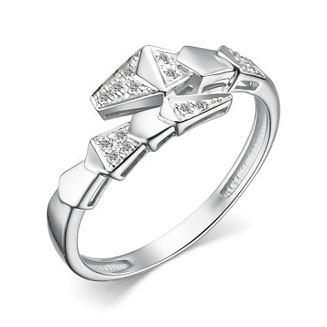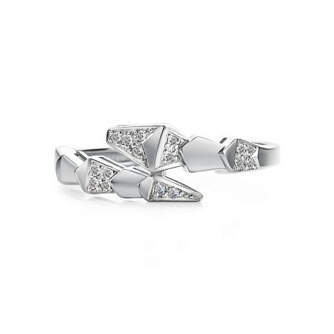 Стильное кольцо с бриллиантами в современном дизайне, выполнено из белого золота 585 пробы с родиевым покрытием