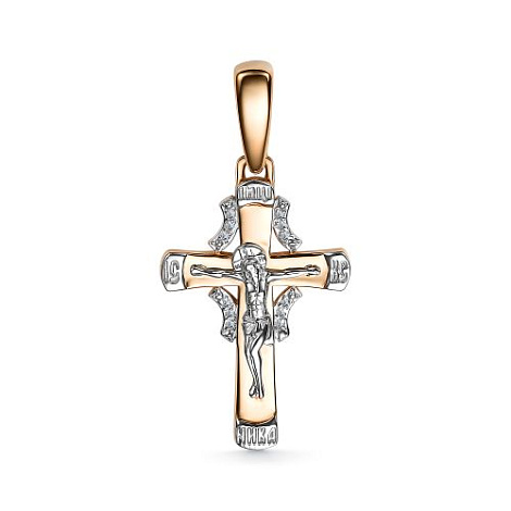 Подвеска в виде креста, в котором исполнены все каноны Православной церкви, выполнен с сочетанием красного и белого золота 585 пробы