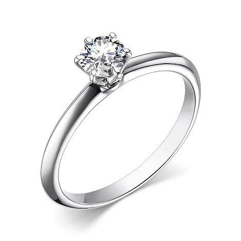 Помолвочное кольцо классического дизайна с великолепным сверкающим бриллиантом, выполнено из белого золота 585 пробы