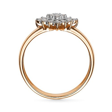 Оригинальное кольцо выполнено в сочетании красного и белого золота 585 пробы с натуральными бриллиантами