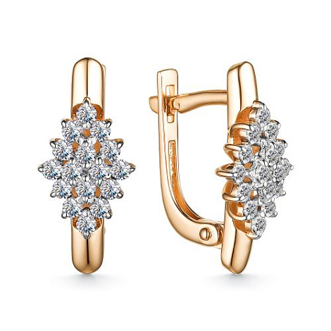 Элегантные серьги с сверкающими бриллиантами в изящном касте круглой формы, выполнены с сочетанием красного и белого золота 585 пробы