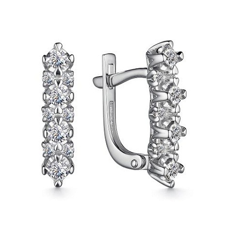 Элегантные серьги, украшенные дорожками бриллиантов, выполнены из белого золота 585 пробы