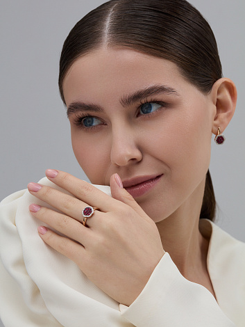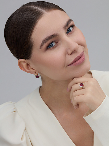 Серьги, комбинированное золото, рубин, проба 585