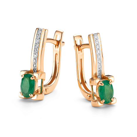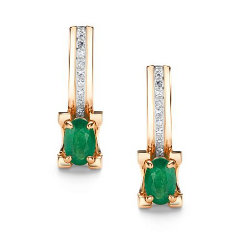 Серьги с изумрудами и бриллиантами выполнены из белого и красного золота 585 пробы. Красное золото особым образом подчёркивает красоту и блеск драгоценных камней, усиливая их сияние. Такое украшение станет модной изюминкой в повседневном или деловом образе. Тип замка - английский, самый надежный и удобный.Представлено брендом АЛЬКОР. Средние характеристики вставки: 18 Бриллиант Круг 17 0.058 2/3, 2 Изумруд Овал 0.86 3/3 В комплект поставки входит: