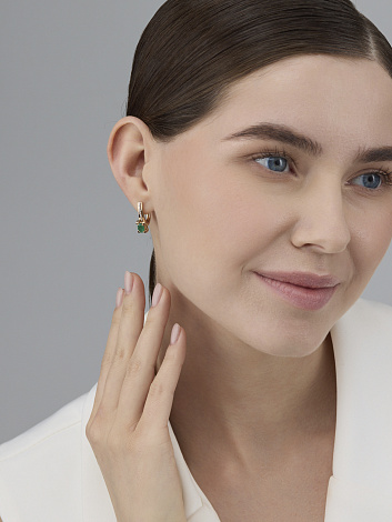 Серьги, комбинированное золото, изумруд, проба 585