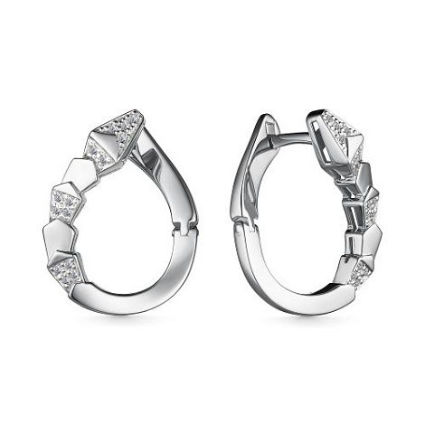 Изящные серьги выполнены из благородного белого золота украшенные брилллиантами. Дизайн серег вдохновлен образом змеи – символа мудрости и силы. Английская застежка гарантирует надежное крепление и комфорт при использовании. Эти серьги станут прекрасным дополнением к любому образу, будь то вечерний наряд или повседневный стиль. Представлено брендом Алькор. Средняя характеристика камней: 28 Бриллиант Круг 57 0.103 4/5 В комплект поставки входит: