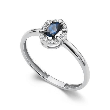 Элегантное кольцо из белого золота 585 пробы станет прекрасным дополнением вашего образа. Оно украшено сияющим сапфиром, окружённым россыпью мелких бриллиантов, что создаёт впечатление бесконечного блеска и очарования. Белый цвет золота подчёркивает красоту и чистоту камней, а дизайн кольца выглядит простым и утончённым. Ширина кольца средняя, что обеспечивает комфорт и удобство при постоянном ношении. Такое кольцо будет идеальным выбором для тех, кто ценит высокое качество и индивидуальность. Представлено брендом АЛЬКОР. Средняя характеристика камней: 12 Бриллиант Круг 57 0.036 4/5, 1 Сапфир Овал 0.32 2/2 В комплект поставки входит: