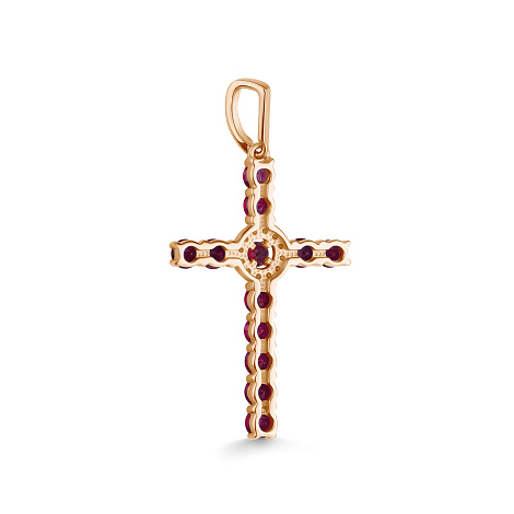 Изящная подвеска в форме креста выполнена из благородного красного и белого золота 585 пробы и украшена рубинами и бриллиантами
