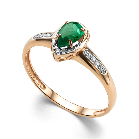 Замечательное кольцо выполнено из благородного красного и белого золота 585 пробы. Оно поражает взор сочетаемостью зеленого изумруда и хрустальных бликов бриллиантов, создавая элегантный ансамбль. Аксессуар продемонстрирует вкус и любовь к природной красоте. Представлено брендом АЛЬКОР. В комплект поставки входит: