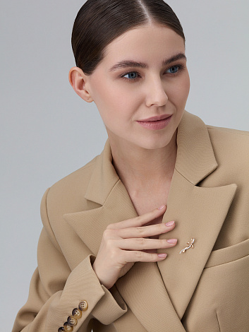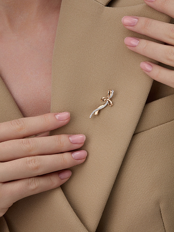 Брошка выглядит очень элегантно и стильно. Бриллианты сверкают, создавая невероятный эффект. Застежка надежная, можно не переживать, что потеряется.