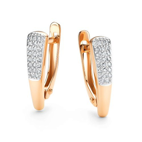 Элегантные серьги, выполнены в сочетании красного и белого золота 585 пробы, украшены сияющими бриллиантами
