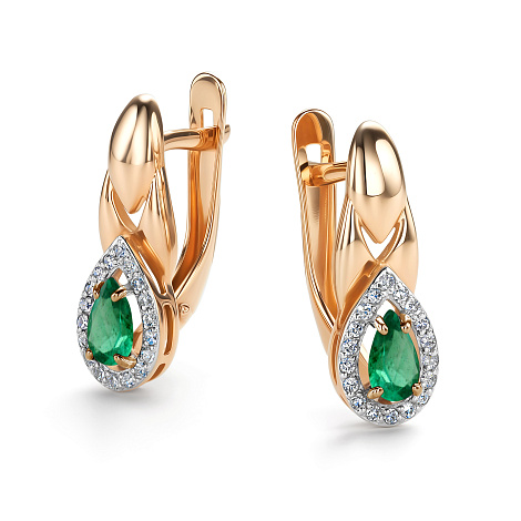 Серьги, комбинированное золото, изумруд, проба 585