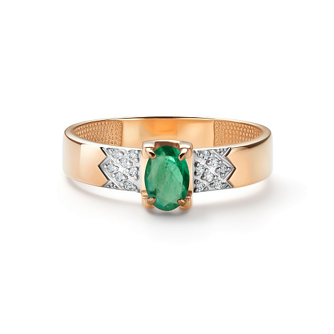 Изысканное кольцо выполнено из благородного красного и белого золота 585 пробы, украшено большим, сверкающим изумрудом и мелкими бриллиантами