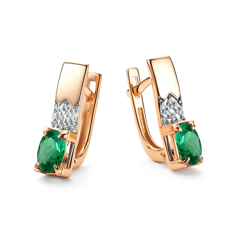 Элегантные серьги выполнены из красного и белого золота 585 пробы, соединяющих в себе благородство, изящество и роскошь. Ключевыми элементами дизайна являются изумруды и сверкающие бриллианты. Изумруды символизируют плодородие и рост, а их насыщенный зеленый цвет гармонично контрастирует с белым и красным оттенками золота. Английский замок обеспечивает комфорт и безопасность при ношении. Серьги выполнены с высоким уровнем мастерства и относятся к категории люксовых украшений, подчеркивая статус и вкус владельца. Представлено брендом АЛЬКОР. Средняя характеристика камней: 14 Бриллиант Круг 17 0.044 2/3, 2 Изумруд Овал 0.877 3/3 В комплект поставки входит: