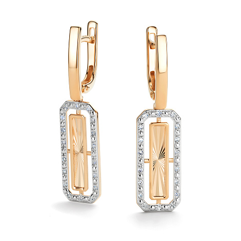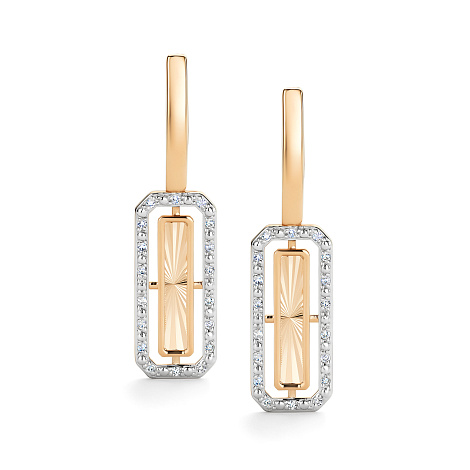 Стильные геометрические серьги изготовлены из красного и белого золота 585 пробы