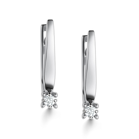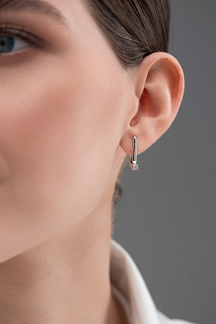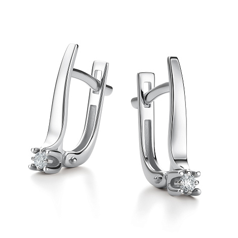 Классические серьги из белого золота 585 пробы с английской застежкой выполнены в изысканном стиле и украшены сверкающими бриллиантами