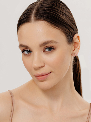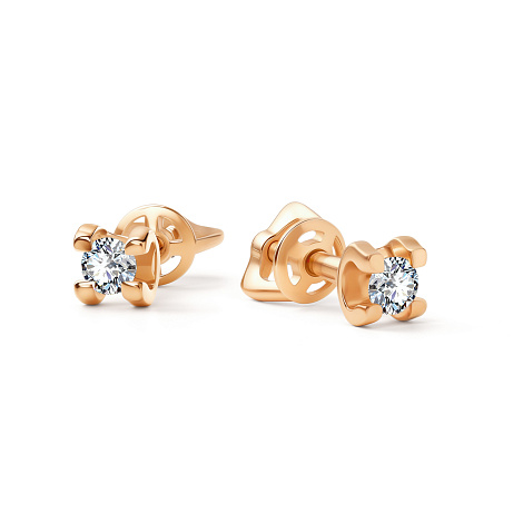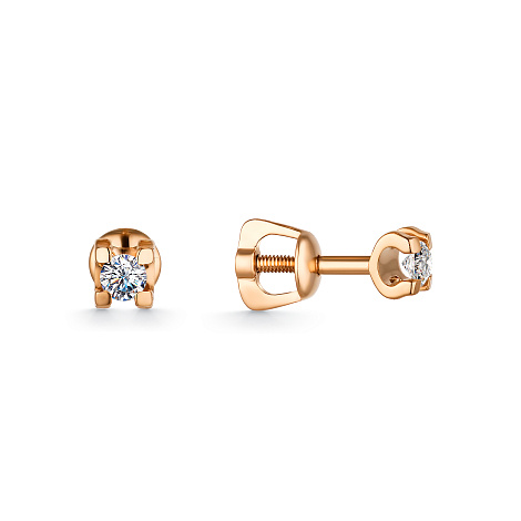 Серьги-пусеты с сверкающими бриллиантами, выполнены из красного золота 585 пробы