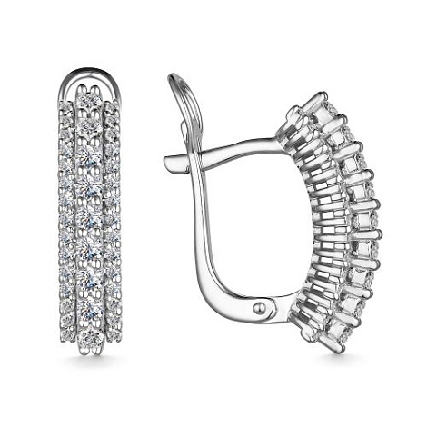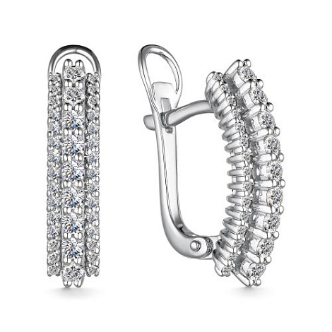 Серьги, украшенные тройной дорожкой из сверкающих бриллиантов, выполнены в белом золоте 585 пробы