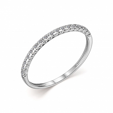 Нежное кольцо выполнено из белого золота 585 пробы, украшено сияющей россыпью бриллиантов