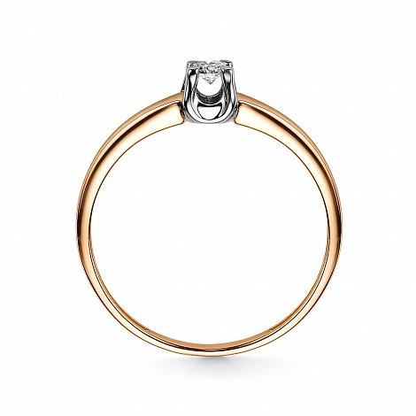 Кольцо классического дизайна выполнено с сочетанием красного и белого золота 585 пробы с искрящимся бриллиантом в оригинальном касте из белого золота