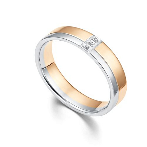 Обручальное кольцо из красного и белого золота 585 пробы, украшенное сверкающими бриллиантами, — это элегантное и изысканное украшение, воплощающее в себе символы любви и верности