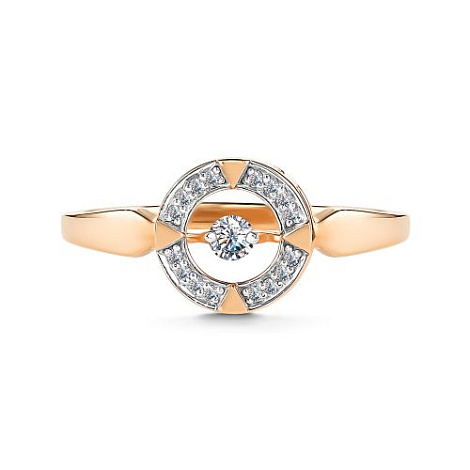 Роскошное романтичное кольцо выполнено в сочетании красного и белого золота 585 пробы, украшено великолепными сияющими бриллиантами