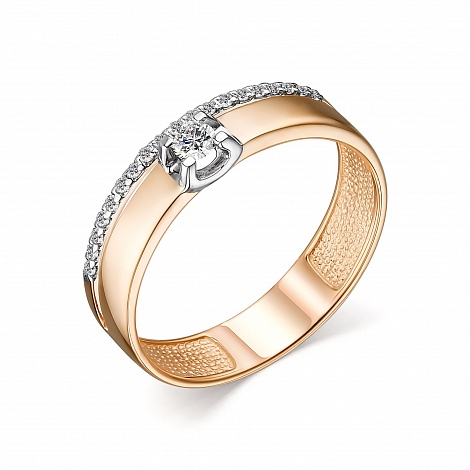 Роскошное кольцо, выполнено в сочетании красного и белого золота 585 пробы, украшено искрящейся россыпью бриллиантов.