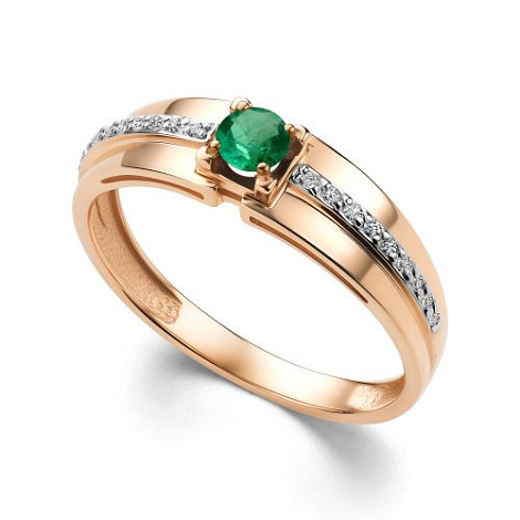 Роскошное кольцо, выполнено в сочетании красного и белого золота 585 пробы, украшено натуральным изумрудом с дорожкой сияющих бриллиантов. Изделие представлено брендом Алькор. Средние характеристики вставки: 1 Изумруд Круг 0.164 3/3